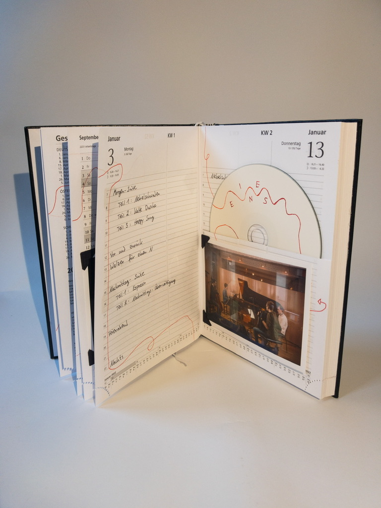 Das Album “Eines Tages” ist neben den üblichen Streaming-Plattformen auch erhältlich als CD in einem umgestalteten, limitierten Buchkalender. Jedes der 50 Einzelstücke ist vom Künstler individuell gestaltet, beschriftet und signiert. Es enthält neben der CD auch Fotos der Studio-Aufnahmen.